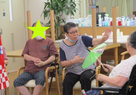 本番当日の前に練習をおこない利用者様と一緒に踊れるように準備しました。いつもは恥ずかしがってしまう利用者様も楽しそうに音楽にのって踊る様子がみられました。